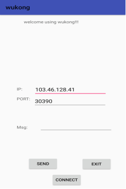 send按键负责从msg编辑框获得文字内容,并转换为bytes数据然后打开向Outputstream进行写入,connect负责连接socket,按下后会启动ConnectThread线程完成向服务端发送connect信号的工作,并启动ReciveThread线程用于接收服务端反馈的信息,eixt按键用于结束整个应用。