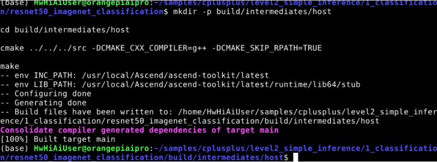 编译命令执行成功后,在USBCamera样例目录下生成可执行文件main。