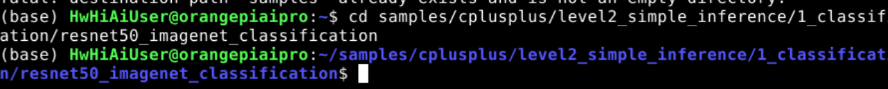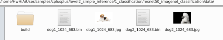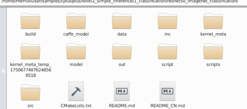 进入“样例目录”,下文中的“样例目录”均指“samples/cplusplus/level2_simple_inference/1_classification/resnet50_imagenet_classification”目录