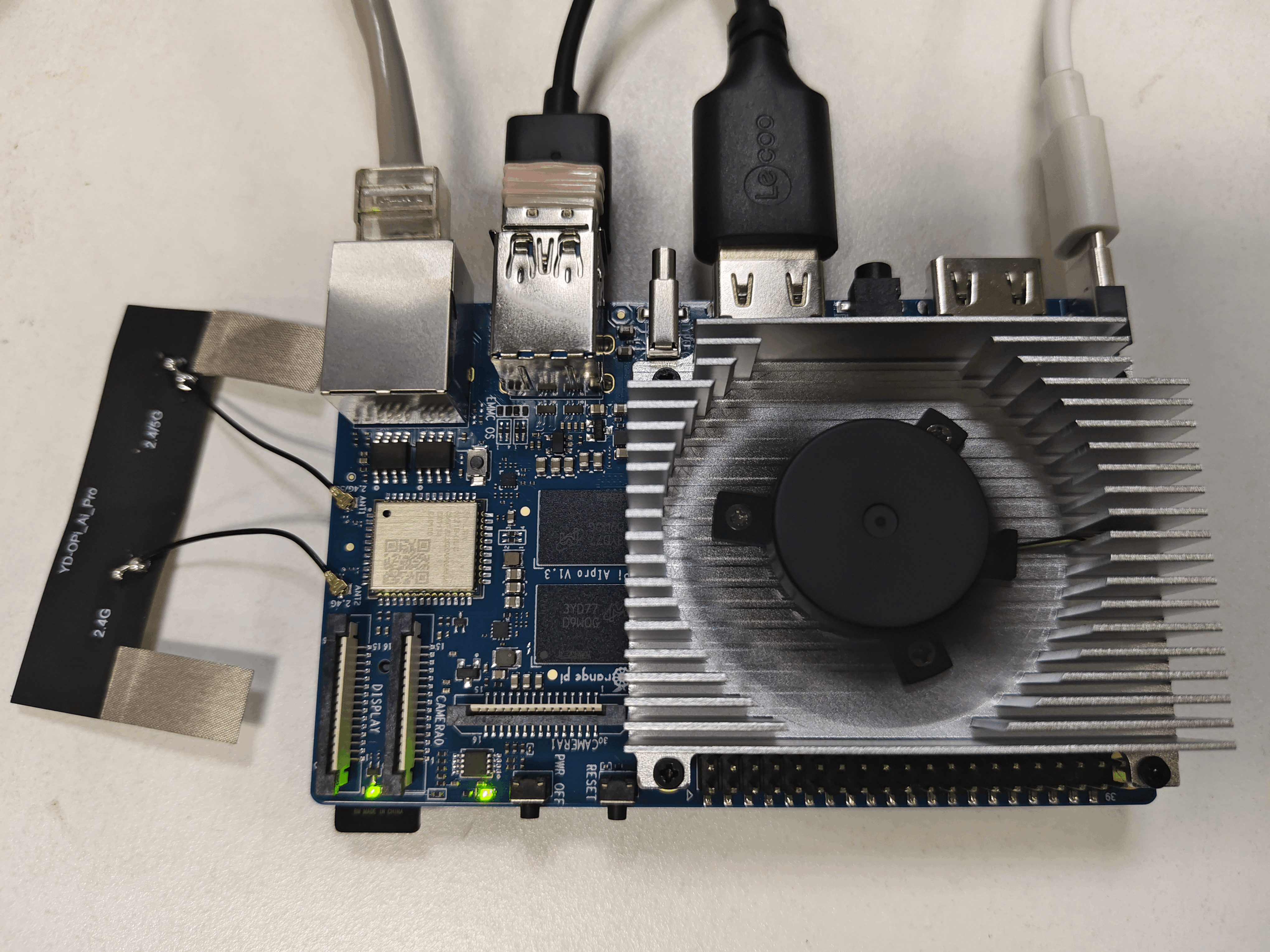 因为本人基本上属于完全小白,之前只玩过某X3板卡,所以本次我也只测试了两张板卡的相同的功能部分!进入系统界面后,空白处滑动鼠标滚轮可以实现切屏,非常丝滑。我目前就试了两个基本的功能,模型转换因为整体系统完全卡死了无法成功转换后续也没有再去跟进了,不过我有把da'zhi的问题解决思路列出来,大家有兴趣的可以看看。usb相机的测试拍摄图片完全ok,不过这种基础功能的实现基本上都差不多。关于散热,相比于某X3板卡,加上官网的散热器的香橙派的散热性能更佳!