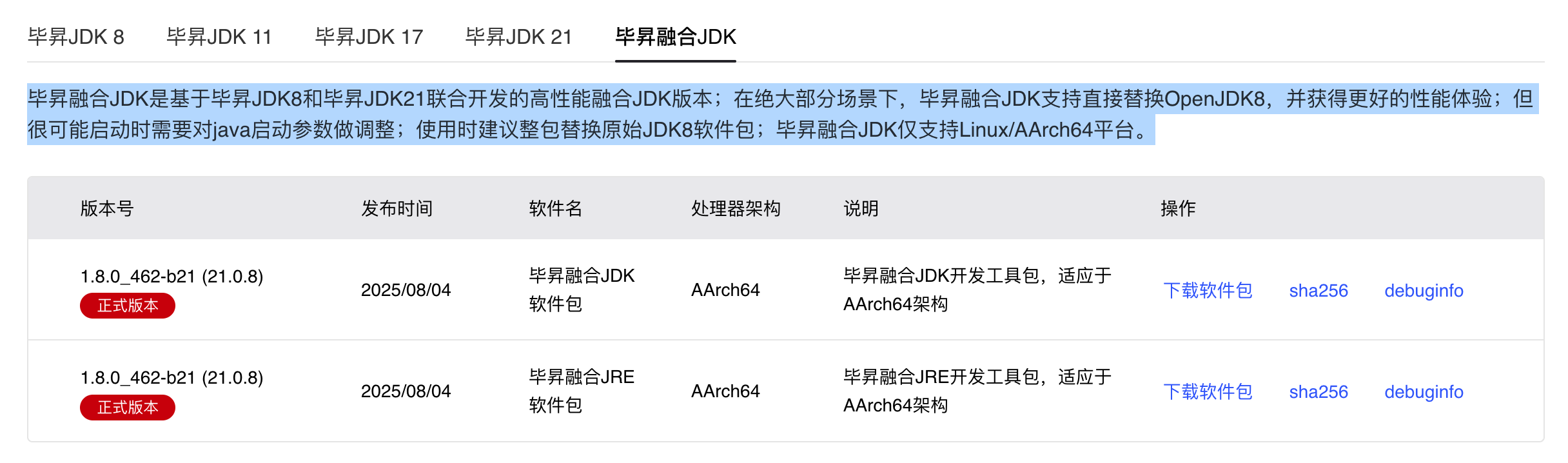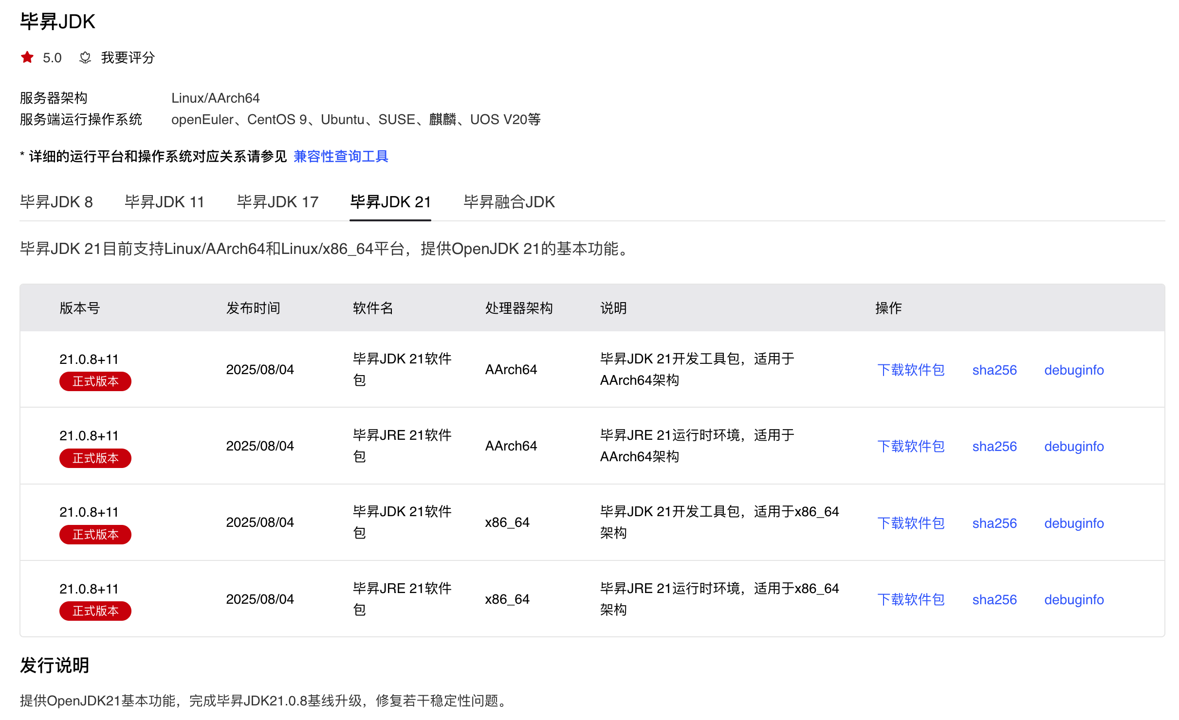 - 支持Java版本: 目前毕昇JDK支持8、11、17、21四个LTS版本。