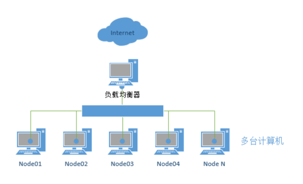每个节点的性能和配置可能不同,根据算法,可以分配不同的权重到不同节点上,以实现不同节点的资源利用。如下图所示网络访问通过负载均衡器,将请求分布到不同节点上。