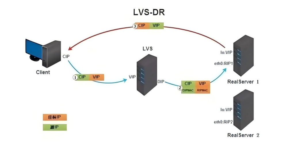 此时的源 IP 地址为 VIP,目标 IP 为 CIP,源 MAC 地址为 RS1 的 RMAC,目的 MAC 地址为下一跳路由器的 MAC 地址(CMAC),最终数据包通过 RS 相连的路由器转发给客户端。
