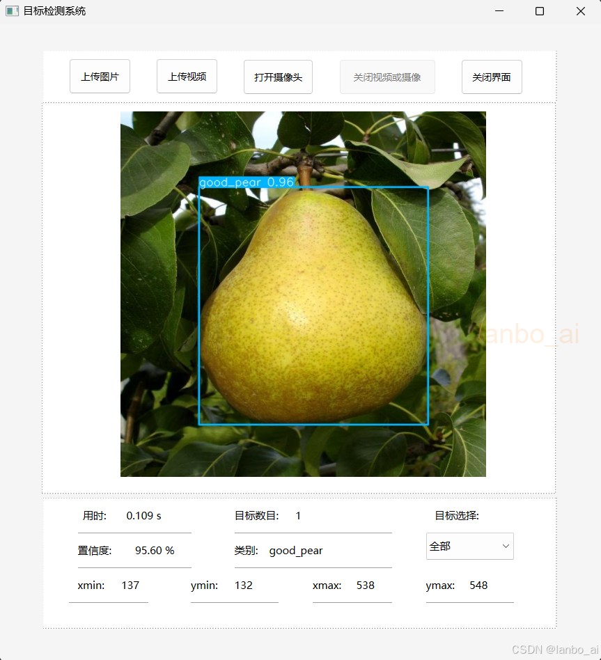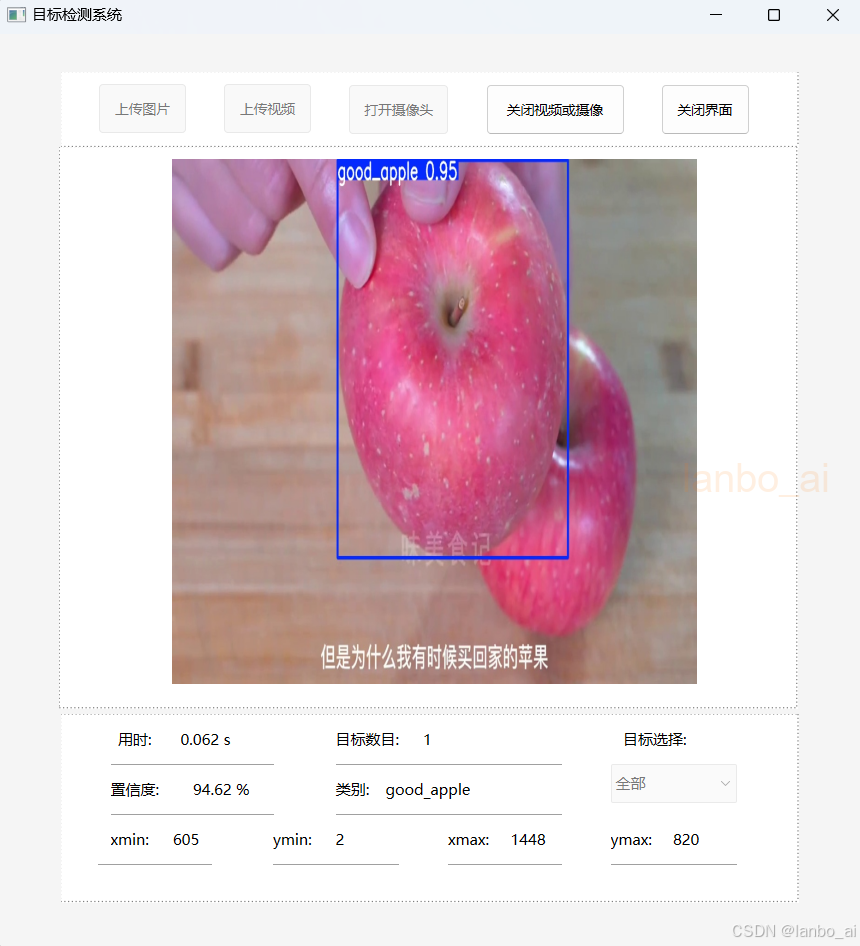 摘要:该项目基于YOLOv8实现水果分级系统,包含完整代码、数据集、预训练模型及GUI界面。系统支持图像/视频检测,提供模型评估指标(精确率、召回率等)。GUI采用PySide6开发,支持摄像头输入。项目结构清晰,包含训练脚本(train.py)、验证脚本(val.py)和图形界面(gui.py),用户可选择使用训练好模型或自行训练。核心功能包括目标检测、定位及结果可视化。系统部署支持PyChar