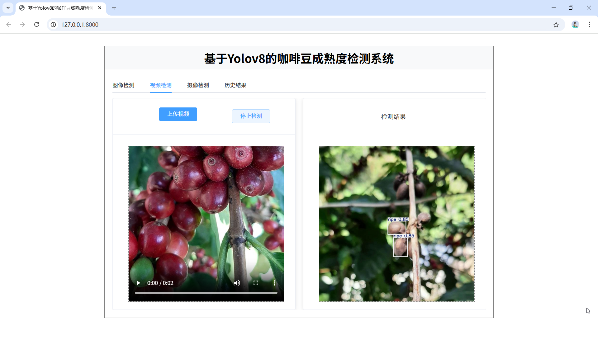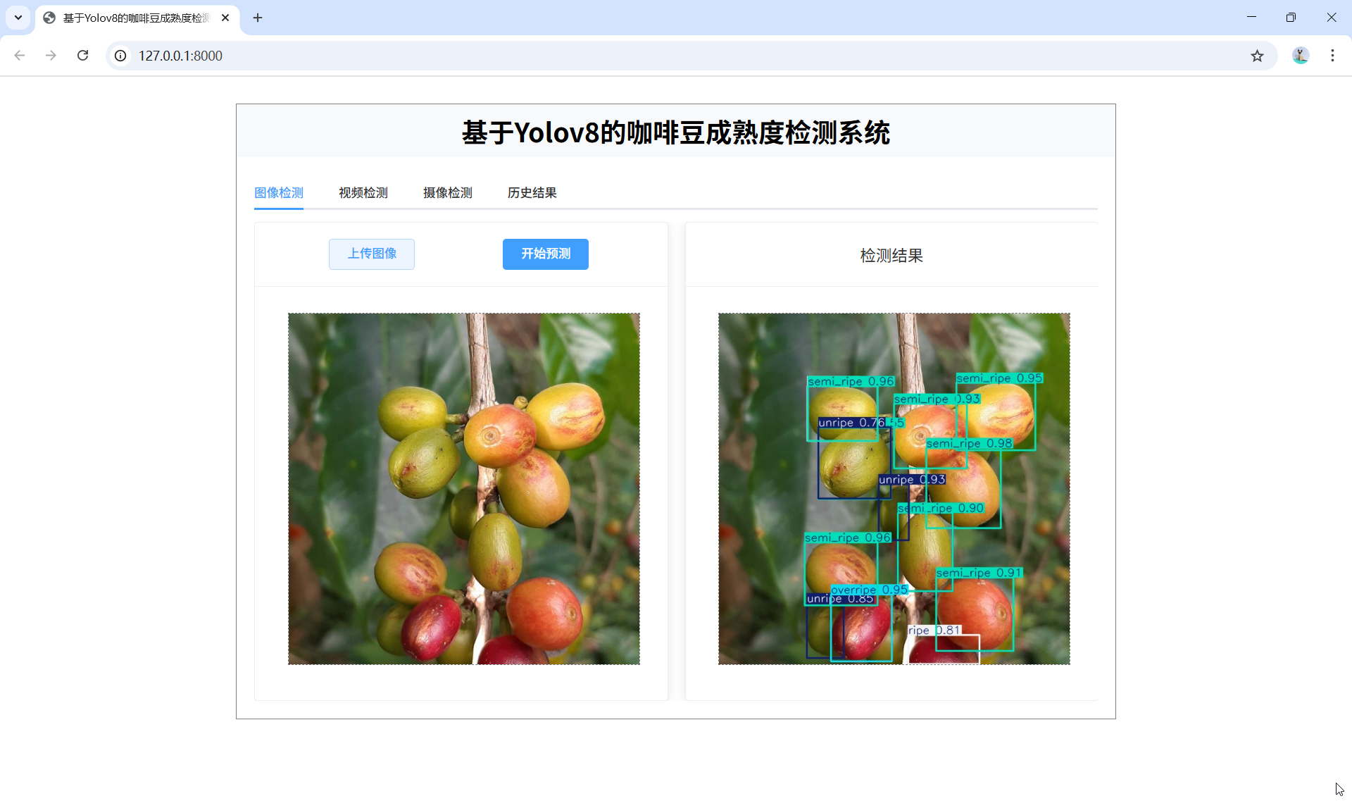 基于yolov8的咖啡豆成熟度检测系统,支持图像、视频和摄像实时检测【pytorch框架、python源码、Django后端】