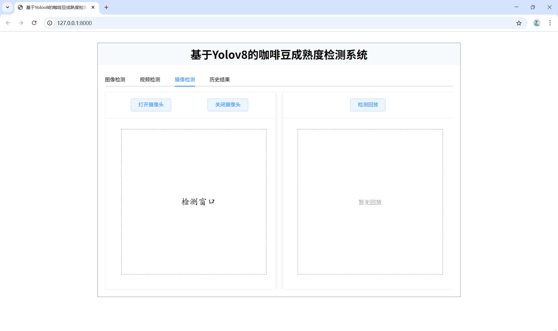 d.摄像实时检测界面,左边为实时检测,右边可支持检测回放