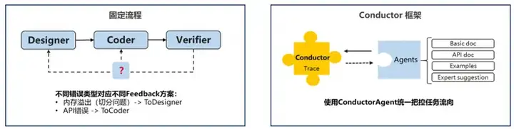 为解决这类问题,工作流中添加Conductor Agent作为中间调度者,存储完整的生成历史记录。通过Conductor智能调控任务流向,有针对性地分析生成过程并给出下一步建议,结合人工经验和特定的历史记录,引导后续 Agent 正确生成,推动整个生成过程高效运转。