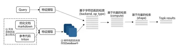 2)算子代码特征:tiling, reordering, vectorization, layout, pipeline等; - 分层混合检索