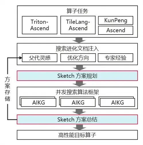 《AI驱动的算子生成框架AIKG:设计与实现》 摘要: 昇思MindSpore AKG团队提出AIKG框架,通过大语言模型(LLM)实现多Agent协同的AI算子自动生成。该框架包含Designer、Coder等核心Agent,采用文档驱动式接入方案支持多DSL扩展,并创新性地引入UnifiedSketch设计模式和Conductor智能调度机制。通过多层级混合检索和RAG技术,系统能有效利用历史