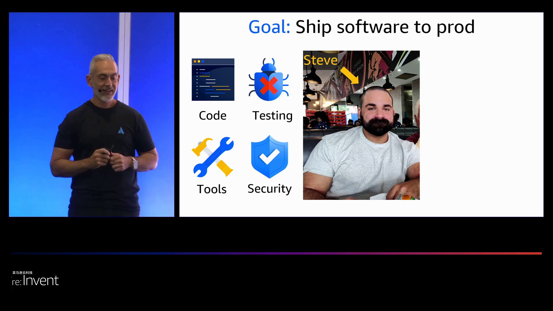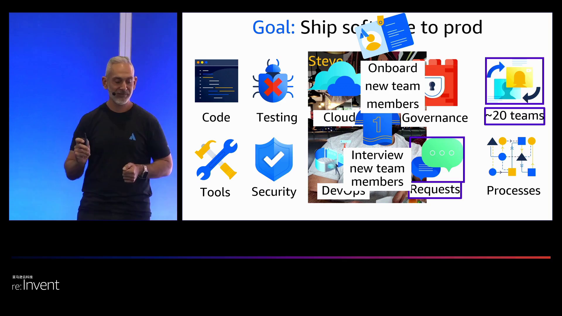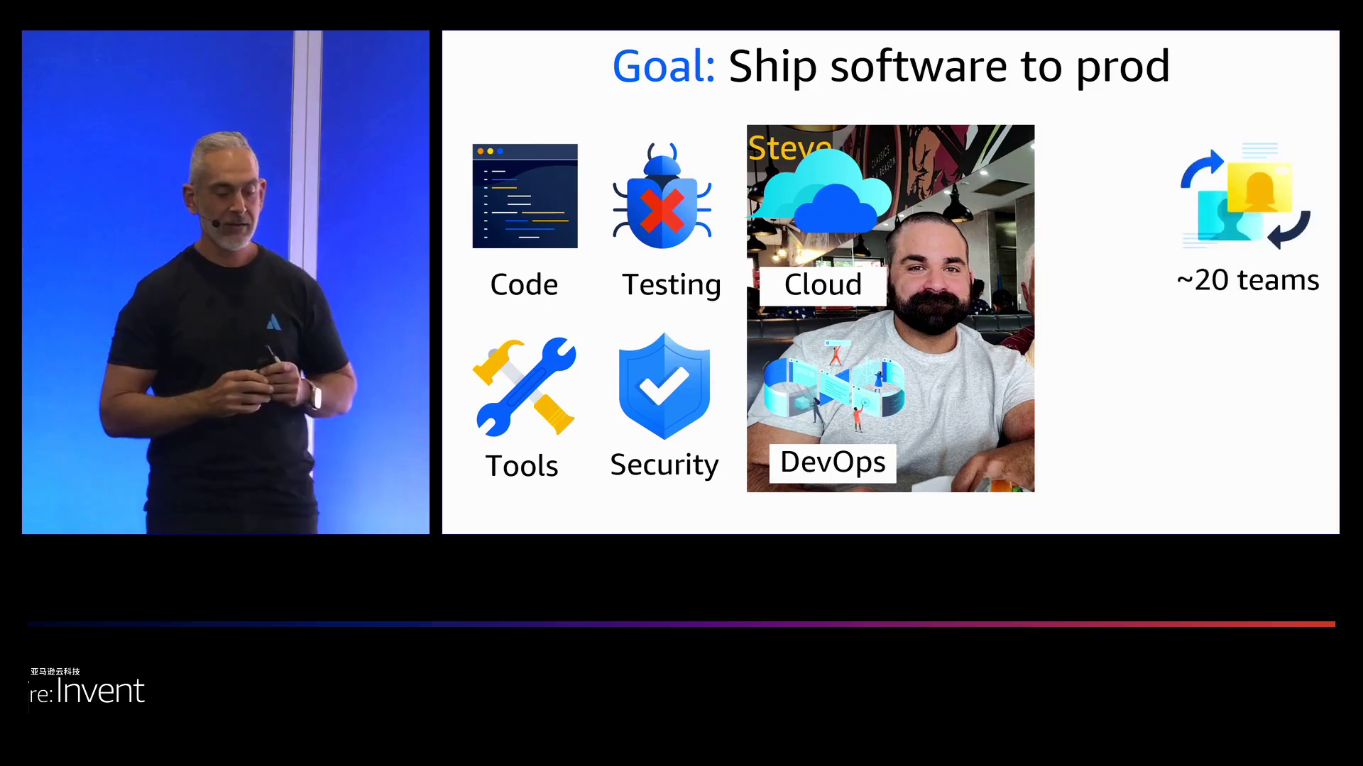 为了说明复杂性的影响,博亚吉提供了一个他曾经密切合作了8年的开发者史蒂夫(Steve)的例子。起初,史蒂夫只是想通过使用亚马逊云科技(Amazon Web Services)的云成形(CloudFormation)、应用运行器(AppRunner)和事件桥接器(EventBridge)等工具将高质量的软件部署到生产环境中,这让他感到满意。但随着时间的推移,史蒂夫的责任范围大大扩展。随着“左移”运动的出现,他不得不承担除了编程之外的测试工作。随着公司采用更多的CI/CD、监控和安全等方面的工具,史蒂夫不得不学习超过20个不同的平台。随着安全方面的“左移”,他还必须承担诸如补丁和安保亚马逊云科技基础设施等额外的任务。随着云计算技术的实施,史蒂夫研究并获得亚马逊云科技认证,以便能够像云成形(CloudFormation)那样利用亚马逊云科技(Amazon Web Services)。随着向DevOps的转变,他不仅要负责开发软件系统,还要负责在亚马逊云科技(Amazon Web Services)中运行这些系统。