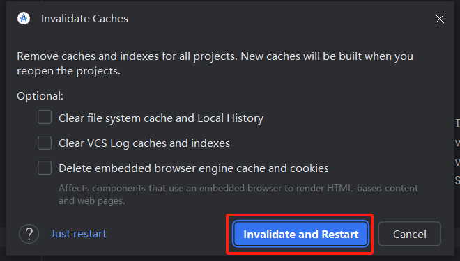 Just restart(仅重启):这个按钮用于仅重启 Android Studio,而不执行任何缓存清理操作 -