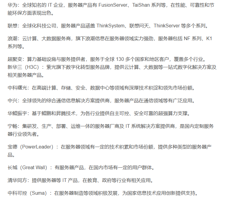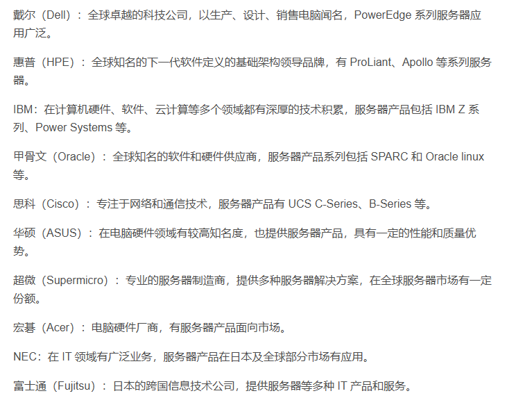 以下是按照国内和国外分类的主流硬件服务器制造商: