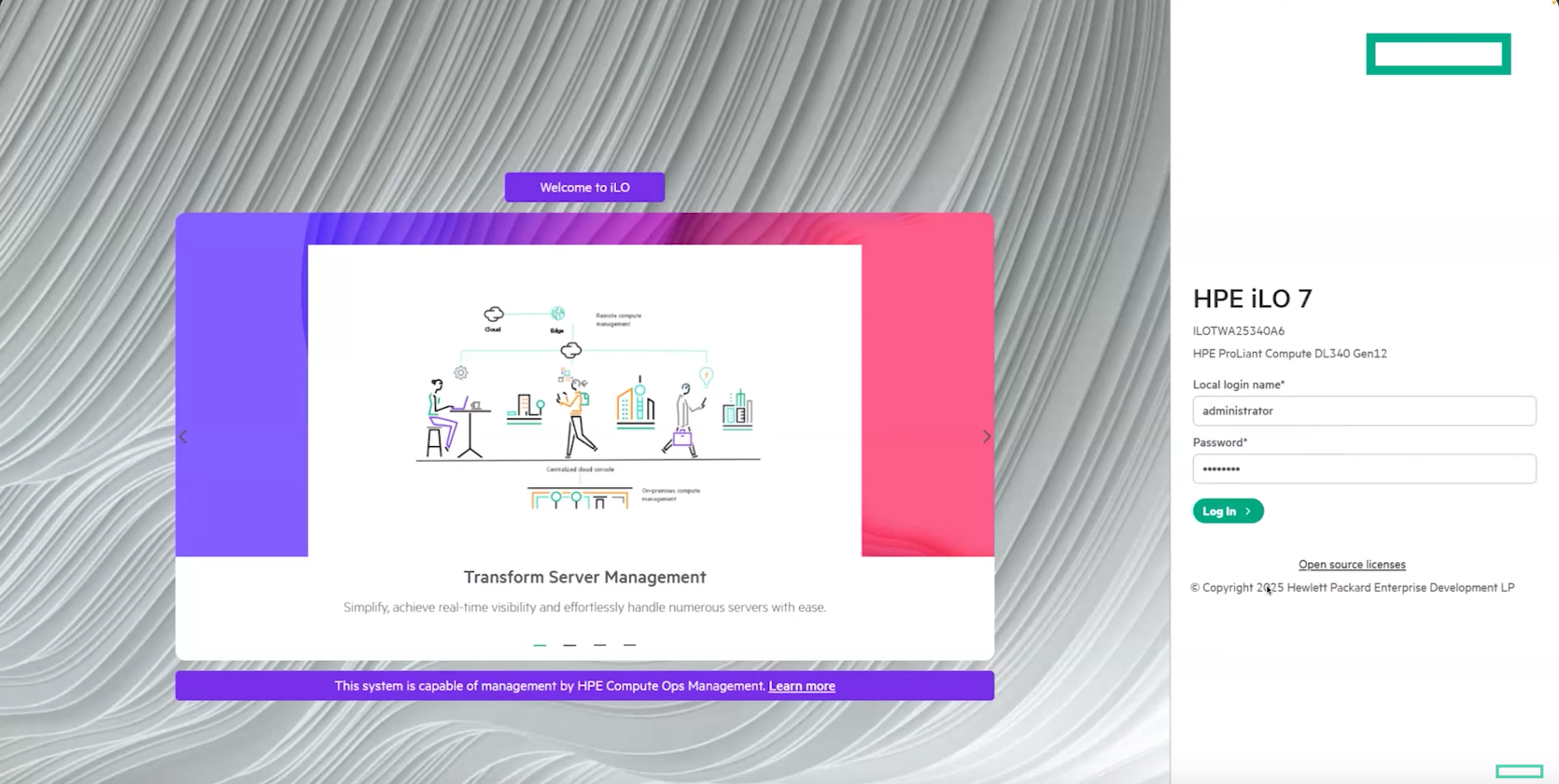 使用管理工具:不同服务器制造商提供各自的专用管理软件或界面,如 HPE 的 iLO、Dell 的iDRAC 或IBM 的 IMM。管理员使用为 BMC 接口设置的 IP 地址进行连接,输入用户名和密码登录后,即可进行各种管理操作。