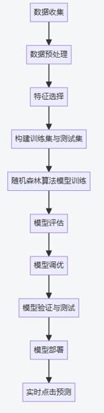在基于随机森林算法的视频用户点击行为预测模型的设计与实现中,数据分析流程设计是确保模型有效性和准确性的关键步骤。首先,项目需要对原始数据进行预处理,包括数据清洗、缺失值处理、异常值检测与处理等。数据清洗旨在去除重复、错误或无意义的数据记录,例如,由于系统错误导致的重复点击记录或明显错误的用户信息需要被识别并清除。缺失值处理则根据具体情况选择合适的策略,如用平均值、中位数或众数填充,或者直接删除缺失值过多的记录。异常值检测与处理则是识别并处理那些偏离正常范围的极端值,以防止它们对模型训练产生不良影响。