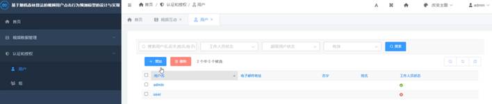 管理员点击用户管理可以看到电子邮件地址,名字,性氏等信息,可以对其进行查看、修改、删除、新增等操作,上方搜索框可以对用户账号进行检索,用户管理具体实现图如图5-7所示: