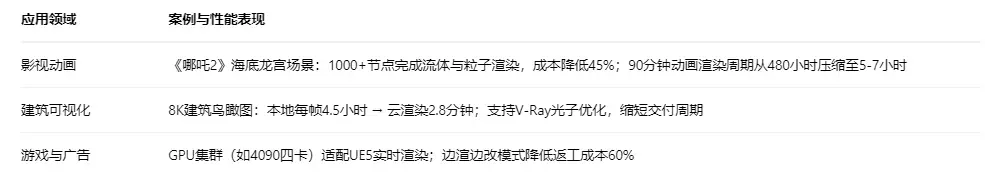 智能优化与支持:动态匹配服务器配置,按渲染器智能推荐机型;7×24技术支持,远程排查问题,兼容复杂场景(如Houdini流体、Maya毛发)