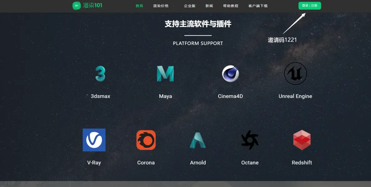注册账号下载客户端:访问官网,输入妖琴嘛 1221,领取免费渲染额度,下载对应客户端