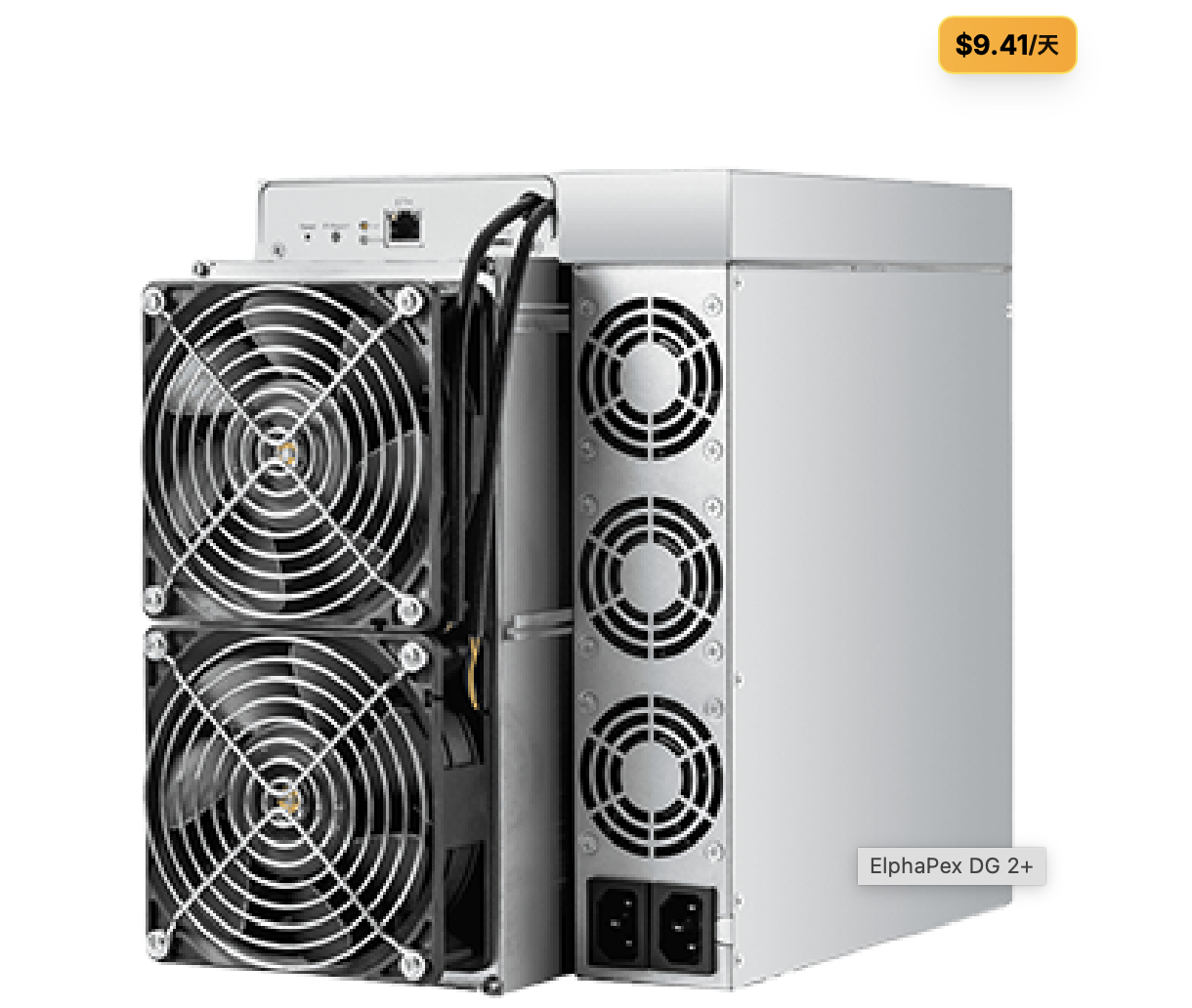 DG2 的核心算力为 18 GH/s ±10%,额定功耗 3960W,对应的能效比为 220 J/Gh。从数据上看,它并不是单纯追求极端性能的“暴力型”机器,而是在性能、稳定和能效之间寻找平衡点,适合持续稳定运行的任务场景。