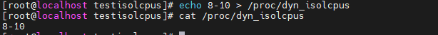 新增/proc/dyn_isolcpus配置接口,允许用户通过该接口设置隔离策略。例如,要隔离CPU核心2、3、4和5,可以写入“2,3,4,5”或“2-5”。