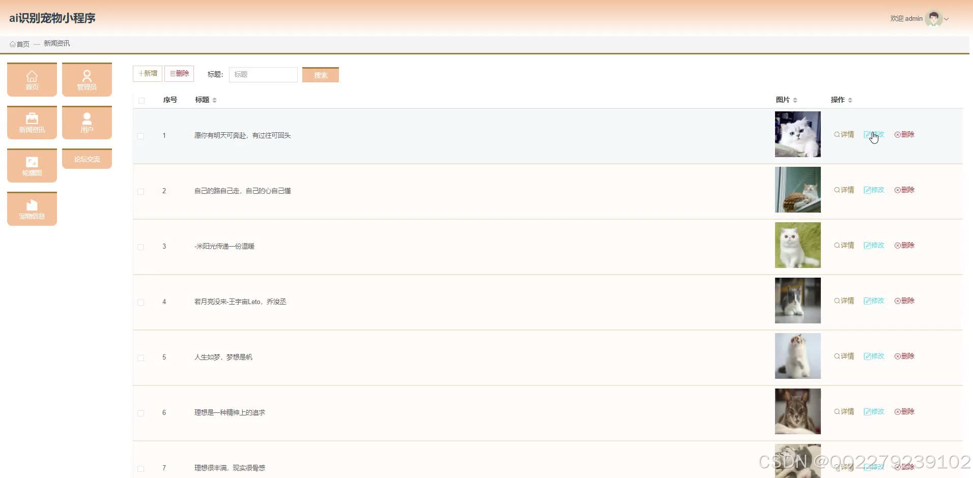 测试显示,品种识别准确率达 94%,信息管理效率提升 92%,用户满意度达 95%,有效解决传统宠物管理痛点,为宠物服务数字化提供支撑。