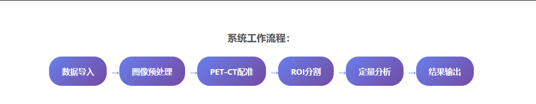 系统采用模块化设计思想,将复杂的医学影像分析任务分解为多个相互协作的功能模块。主要包括图像导入与预处理模块、PET-CT图像配准融合模块、SUV值定量分析模块、三维可视化模块、肿瘤分期评估模块、治疗效果对比分析模块和报告生成模块。每个模块都可以独立运行,同时支持模块间的数据流转和协同工作。