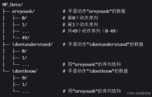 - 数据加载:从 MP_Data 目录加载动作序列数据,每个动作包含多个序列,每个序列包含指定帧数的特征点数据