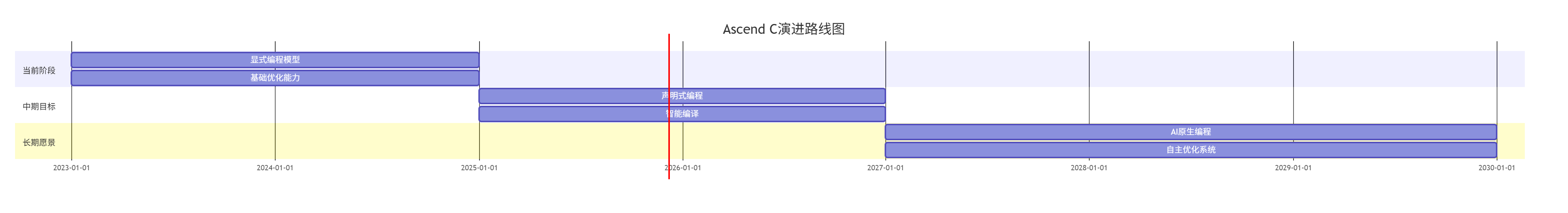 Ascend C的未来演进将沿着自动化、智能化、通用化三个方向展开,逐步降低开发门槛同时提升性能上限。