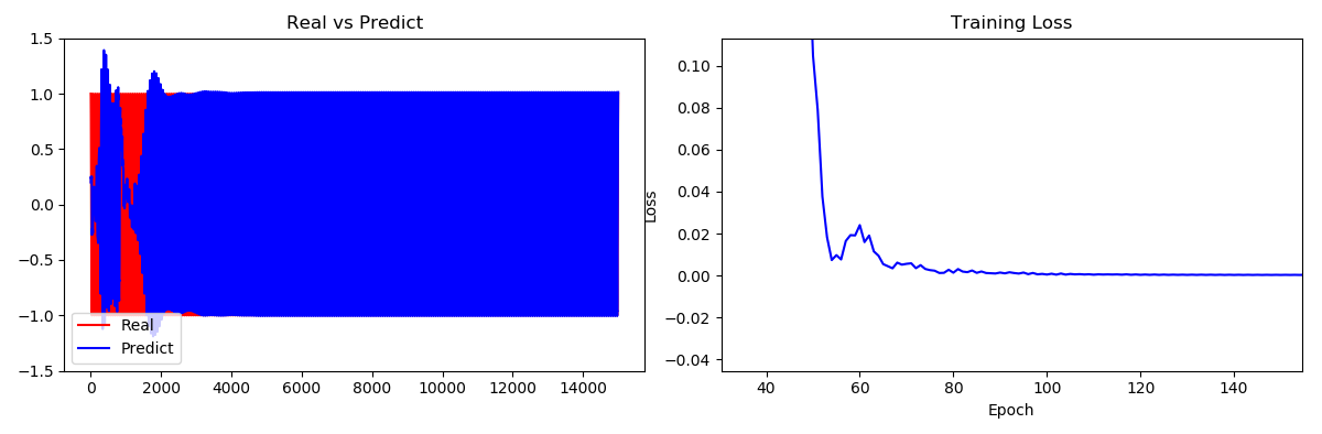 我们看到在第100个epoch时,Loss基本收敛,对应的也是真实值和预测值基本完全重合。