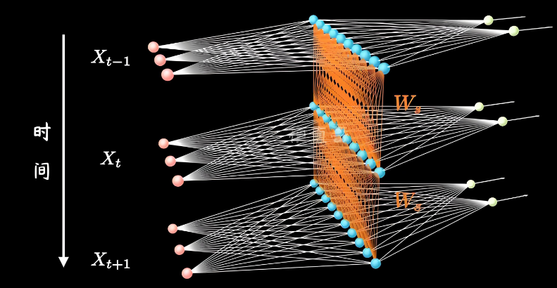 但真实的RNN其实一般不止一层,大家感兴趣的可以去看看B站梗直哥画的立体图,因此上面的图其实是下面立体图旋转九十度的正视图。此时的RNN就是3层RNN叠在一起的。