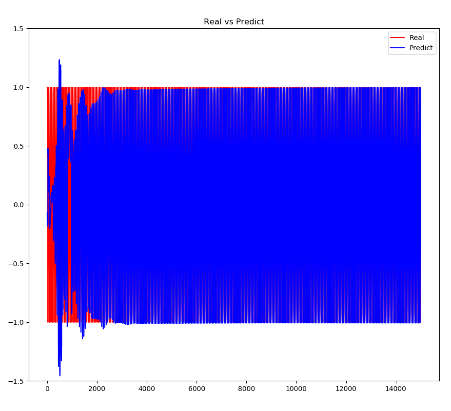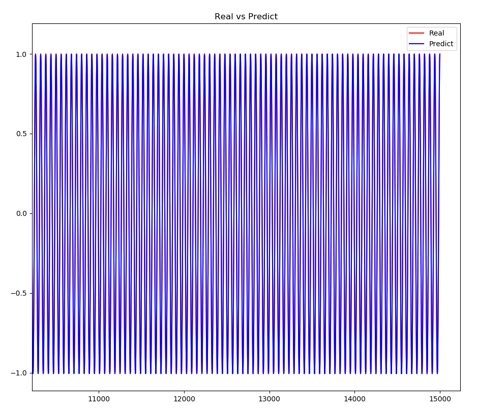我们可以看到一开始真实值和预测值差距和还蛮大的,大概在3000左右时,真实值和预测值就很接近了。一个epoch中有30个值,因此4000次左右大概在第100epoch左右。 我们放大看看,可以看到最后真实值和预测值基本重合了: