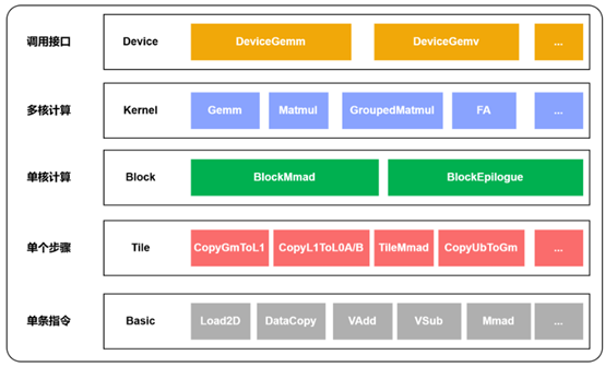 Basic 层是最底层指令层,Tile 层步骤最终拆解为该层原子指令(如 MMAD)执行。