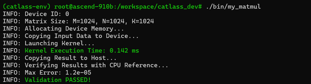 Bash# 运行算子,矩阵大小 1024x1024x1024./output/bin/my_matmul 1024 1024 1024 |