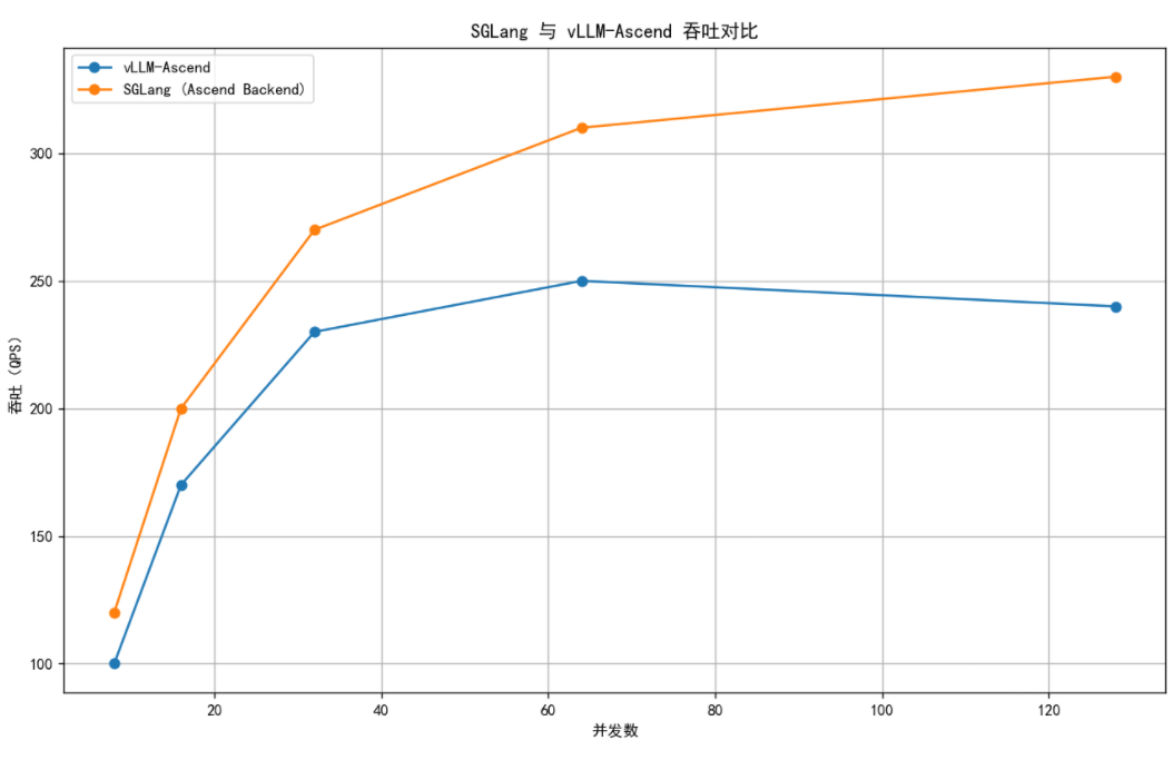 高并发场景中,SGLang 的整体服务端表现更适合 NPU 生态。