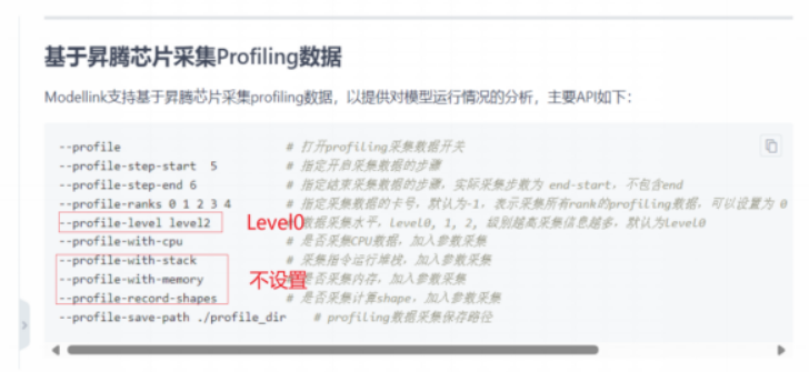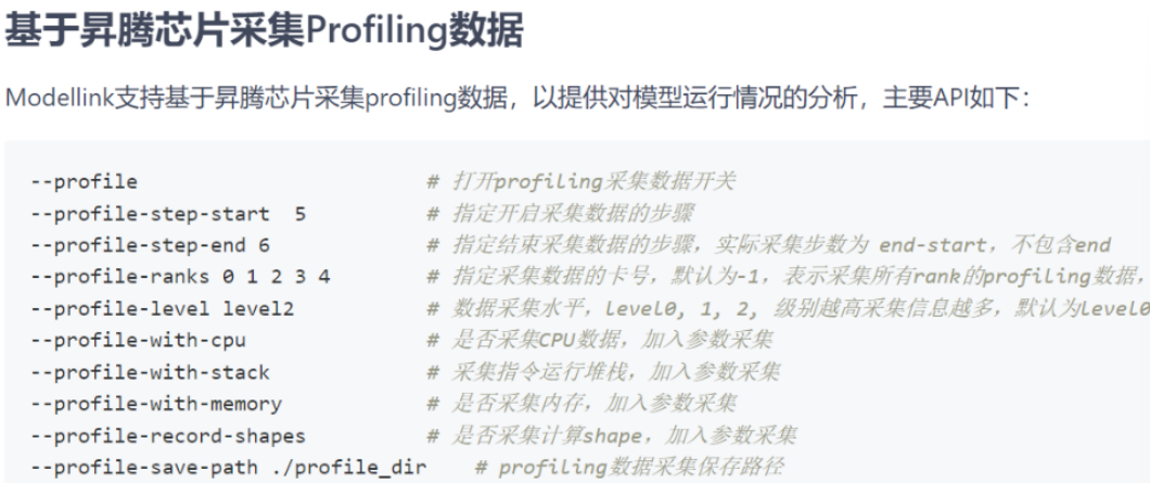 参考链接:ModelLink: 昇腾LLM分布式训练框架 - Gitee.com。下面是展示了命令行添加Profile参数的示例:在训练脚本后缀如 --profile,即可生成日志。采集前清理缓存,避免日志混淆。这在多迭代训练中尤为重要,否则文件膨胀导致解析崩溃。