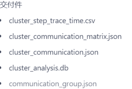 msprof-analyze cluster -d {path} -m {mode},输出cluster_analysis_output文件夹。 - 典型输出5文件,如下图展示,即使部分缺失,CSV文件足矣。