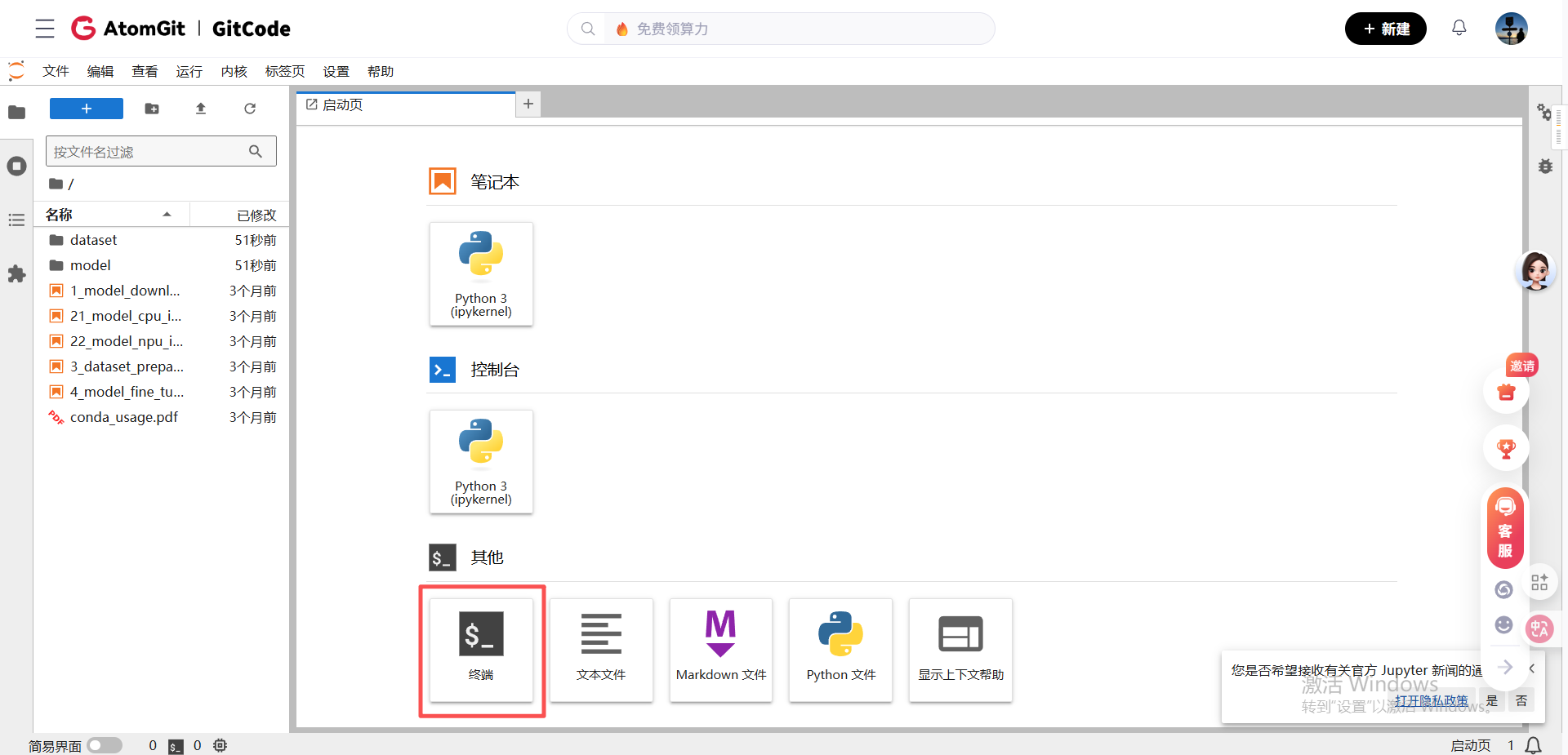 2.1.1 启动GitCode Notebook并进入终端