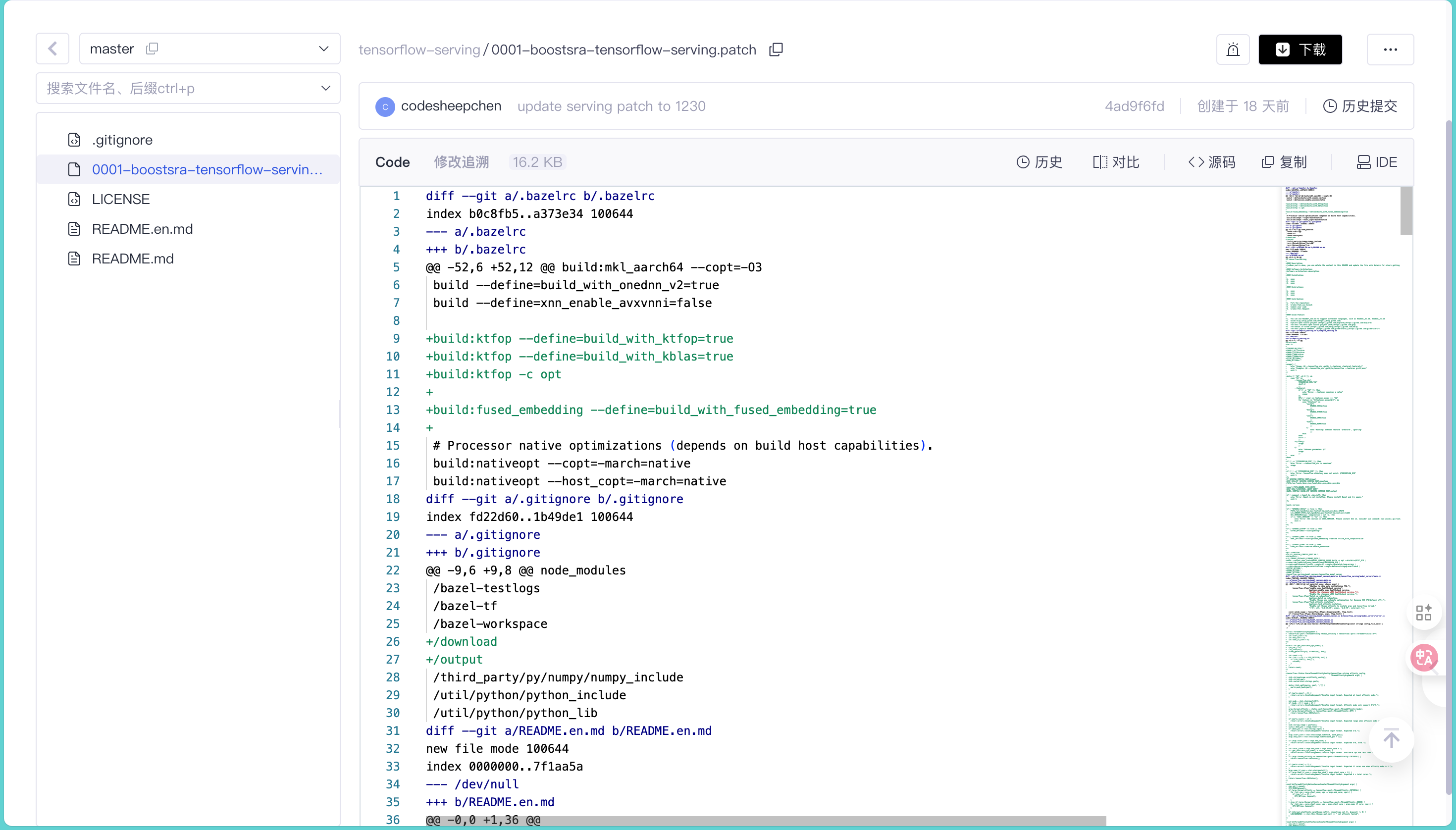 这种 patch -p1 的操作在内核开发里是家常便饭,但在应用层开发里见得少了。它最大的好处是透明。你不用担心厂商在代码里藏私货,打开 0001-boostsra-tensorflow-serving.patch 这个纯文本文件,每一行增删都清清楚楚。