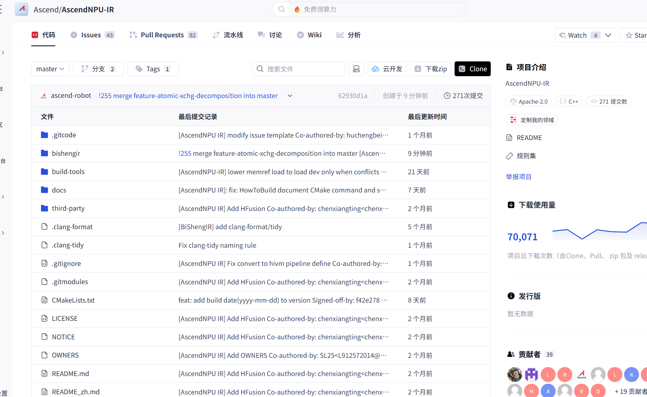 - 源码库: AscendNPU-IR,源码库部署在了gitcode中,我们直接使用git clone指令或者下载zip压缩包就可以直接获得得到。
