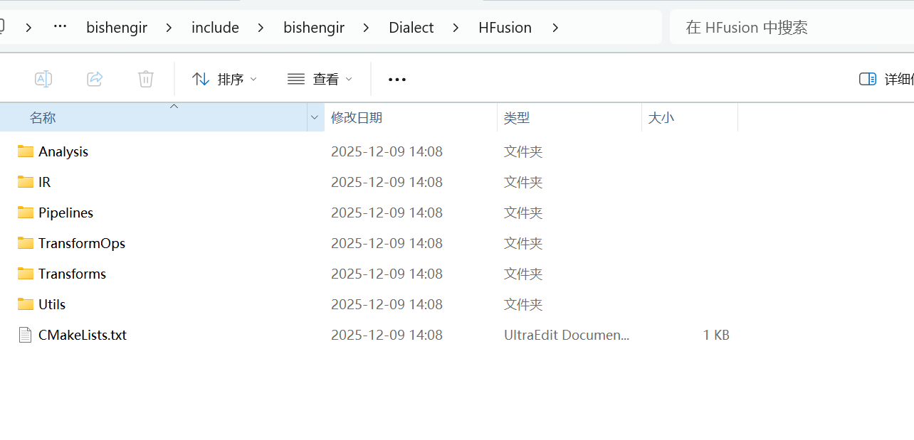 - hybrid fusion: 位于 bishengir/include/bishengir/Dialect/HFusion。这是图层面的 IR,主要描述算子的逻辑(如 Add, MatMul),不关心数据具体在哪里(GM vs UB)。