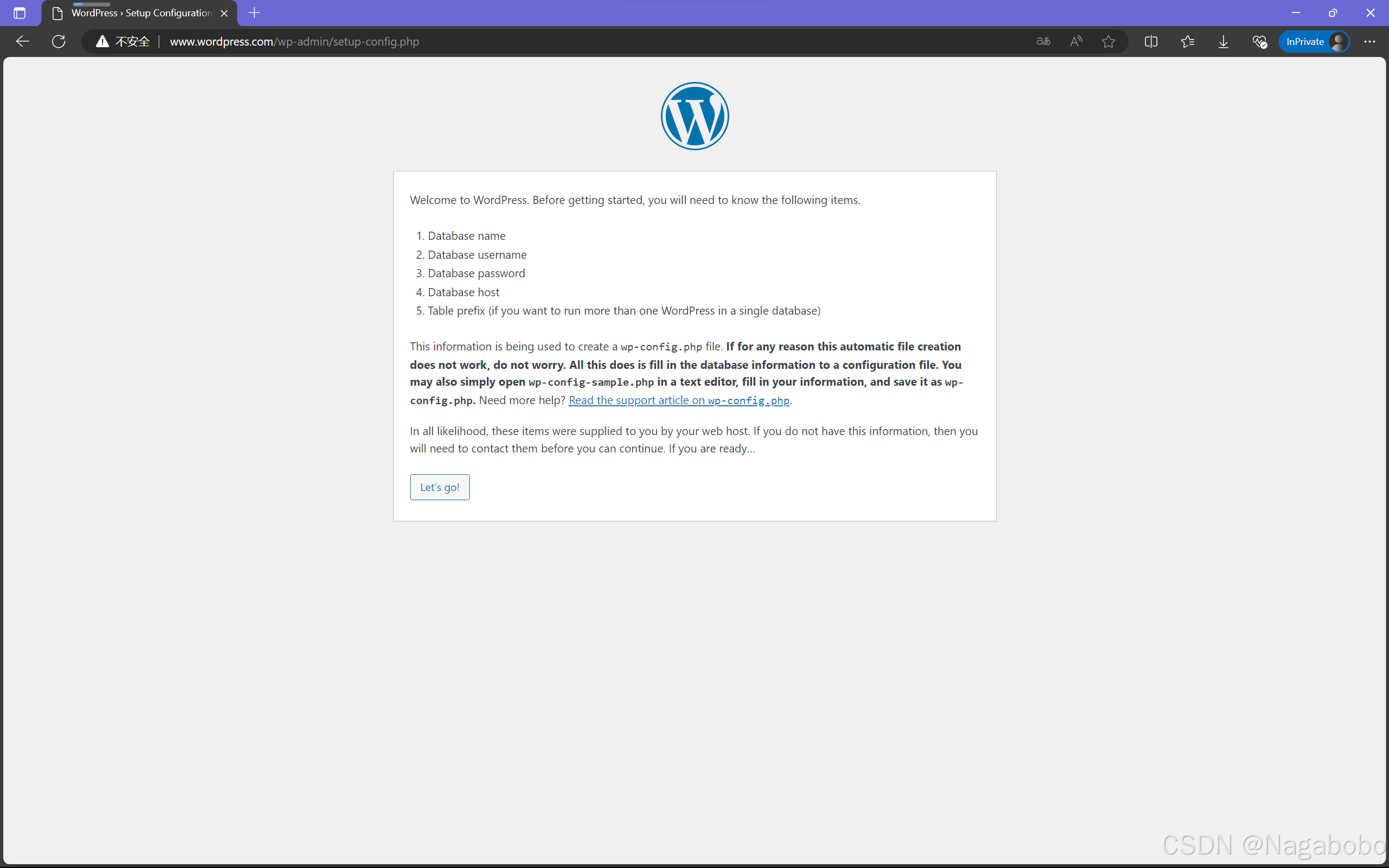 访问域名www.wordpress.com,即可看到WordPress的安装页面。