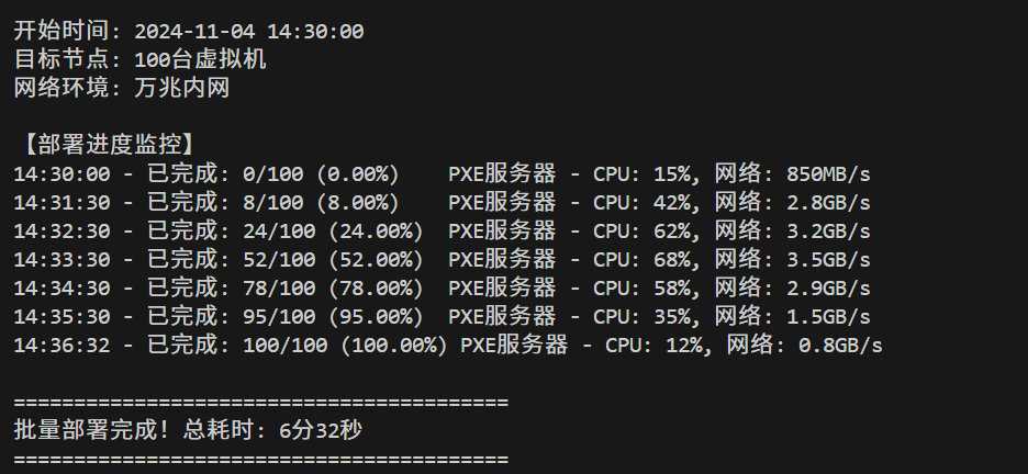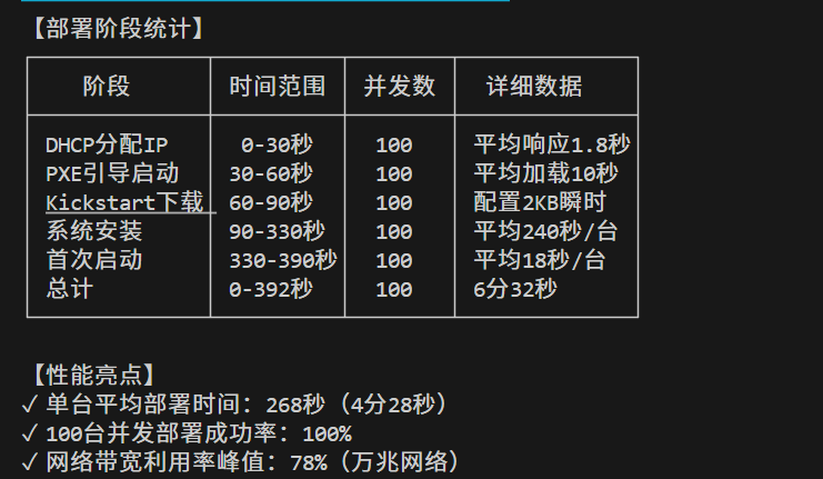 从虚拟机创建到系统完全可用平均耗时70秒,为业务快速扩容提供了高效的基础设施支持。