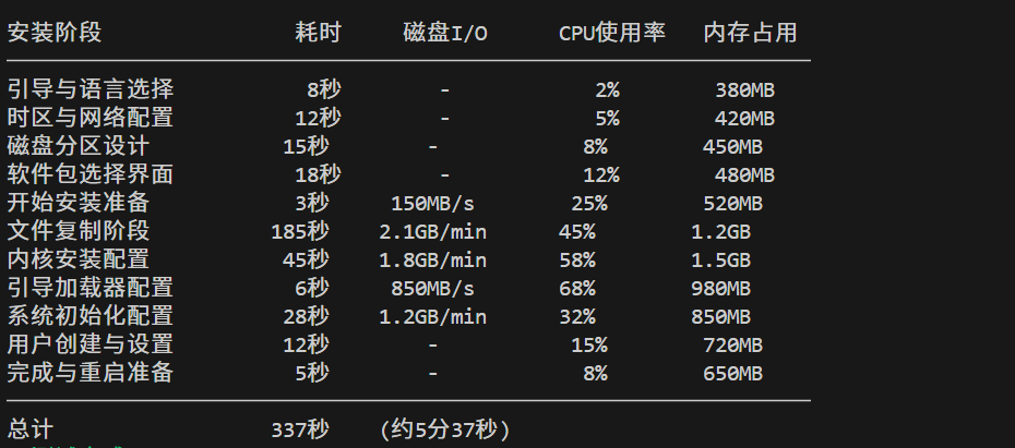 ISO安装方式在物理服务器和虚拟化环境中仍广泛应用。本节在标准硬件环境下进行完整安装测试,记录各阶段性能指标。