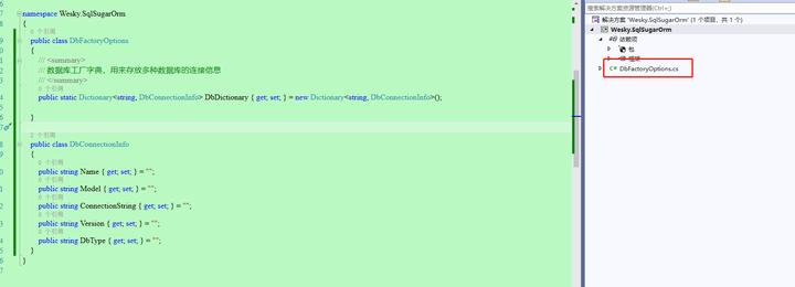 3、新增一个存放连接数据库的连接实体类,由于可能存在多个数据库,此处做成了字典来存放。