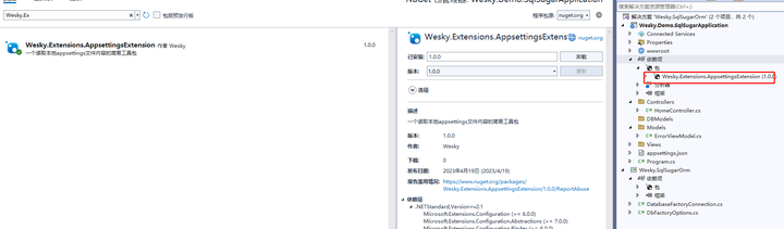 8、添加一个简易版的读取appsettings内容的包:Wesky.Extensions.AppsettingsExtension