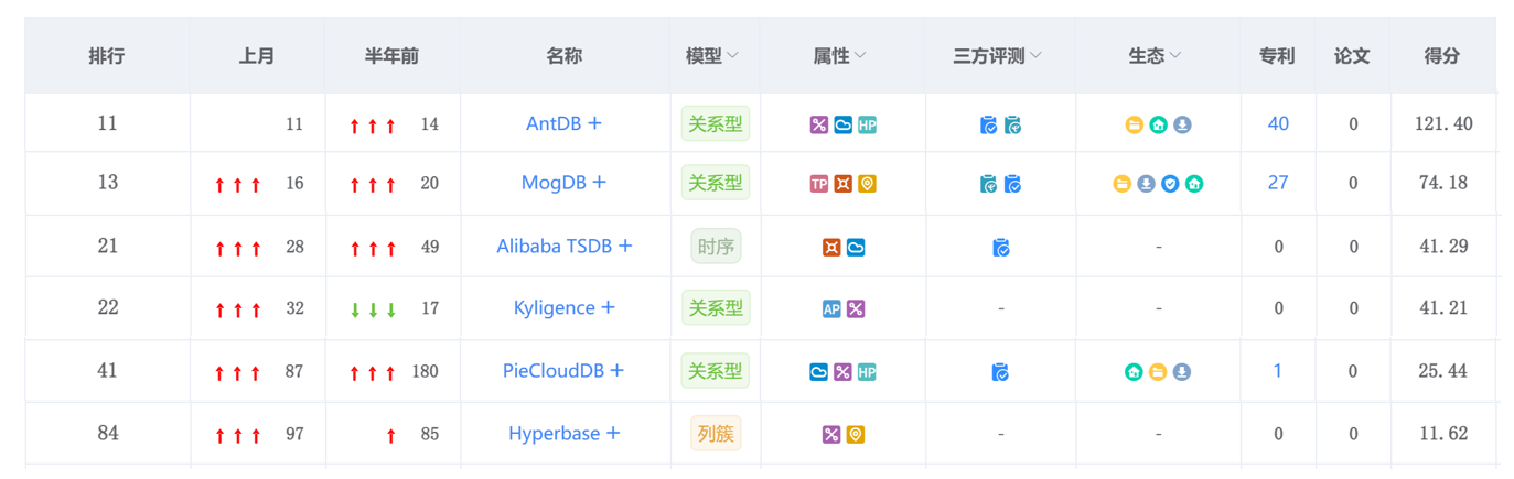 亚信科技旗下通用型企业级数据库产品 AntDB 以121.4分连续两个月维持榜单第11名。AntDB 数据库从第一代全自研内存数据库,到现在广泛兼容SQL生态的分布式流式实时数仓,历经15年通信核心业务锤炼,形成了“多、久、快、稳”四大特点。近日,其荣获互联网周刊金i奖“2022年度产品”,并与神州云动、蓝凌软件等多款产品完成兼容互认证。这些消息的宣发是其能在榜单上维持优势地位的原因。
