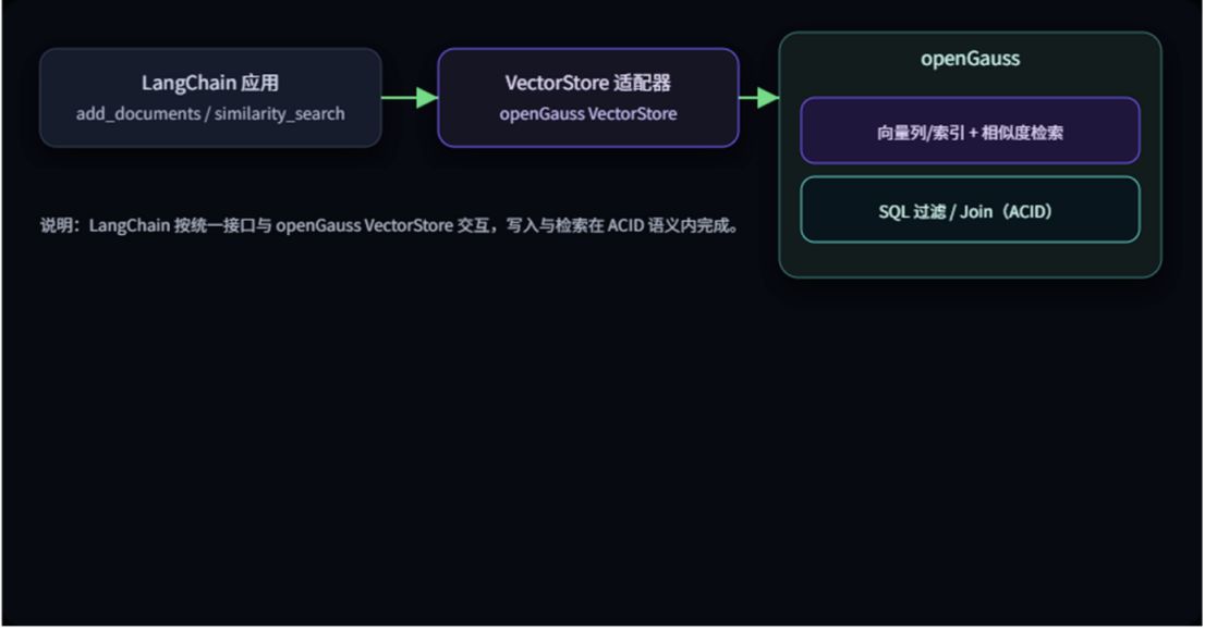 而且openGauss跟 LangChain 有官方 VectorStore 集成,应用层改造成本低;