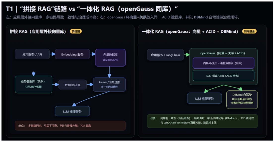 但是openGauss 相当于把向量与关系合在一个 ACID 世界,先天降低一致性与治理成本