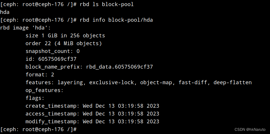 在存储池block-pool内创建一个大小1GB,名称hda的镜像