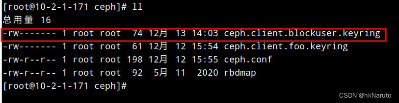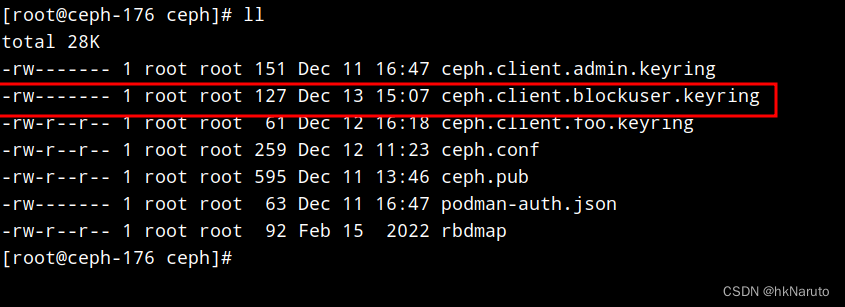 [ceph: root@ceph-176 /]# ceph auth get client.blockuser -o /etc/ceph/ceph.client.blockuser.keyring