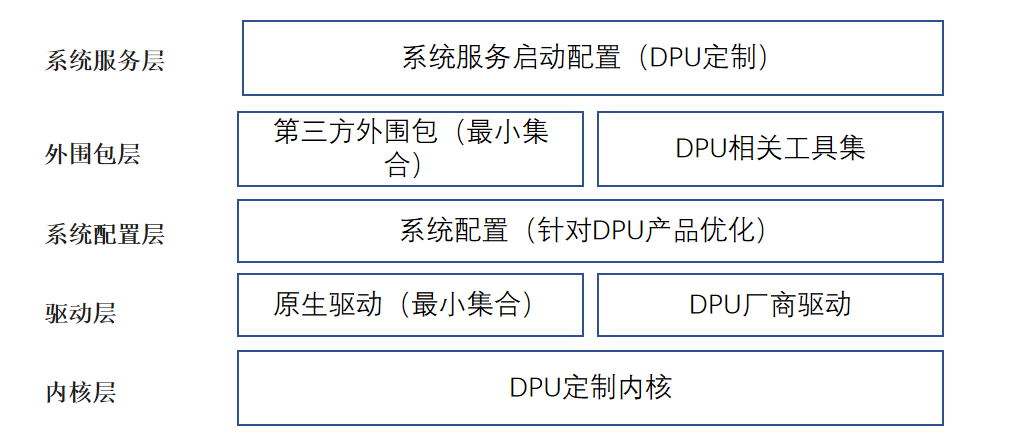 外围包层:对 openEuler 外围包进行裁剪定制,选择最小集合;提供 DPU 相关的定制工具集合。